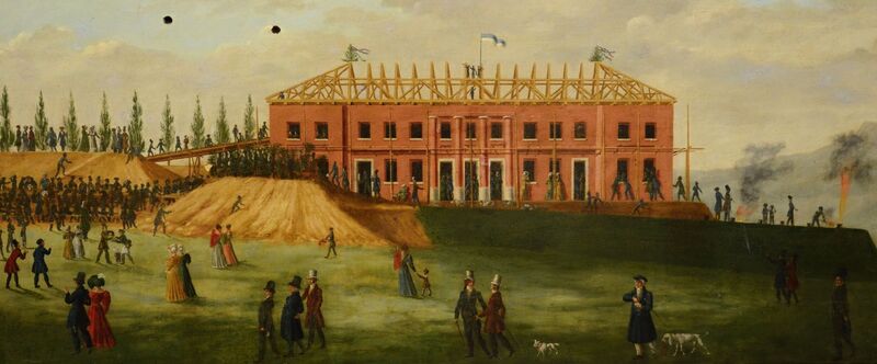 Výřez části obrazu ze střeleckého štítu z roku 1839 (zdroj: Střelecké štíty, obr. - OB34, výřez, SČM Liberec)