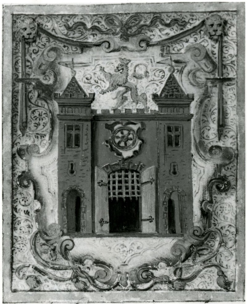 Výřez části obrazu ze střeleckého štítu z roku 1832 (zdroj: Střelecké štíty, obr. - OB15, výřez, SČM Liberec)